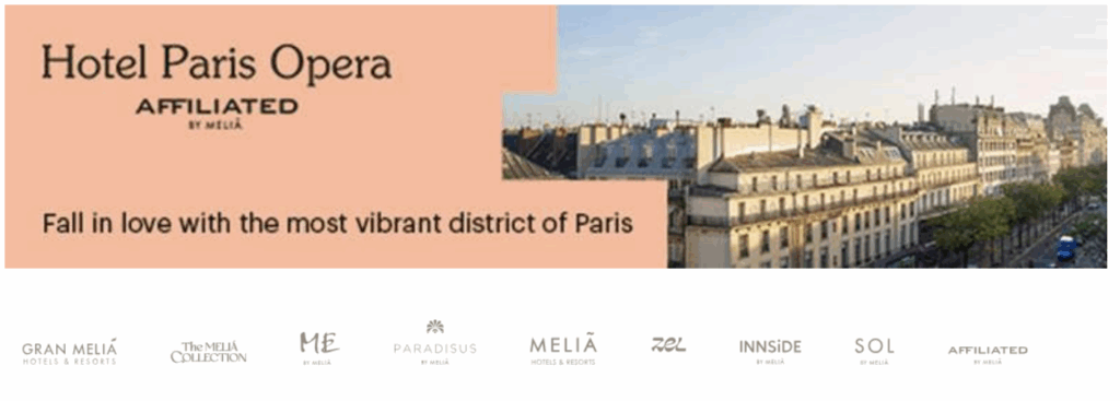 Descubra a nuestros miembros en los escaparates del hotel Melià Paris Opéra: Hôtel Paris Opéra Afiliado por Melia:  Dirección en París: 3 Bd Montmartre, 75002 Paris –  click here